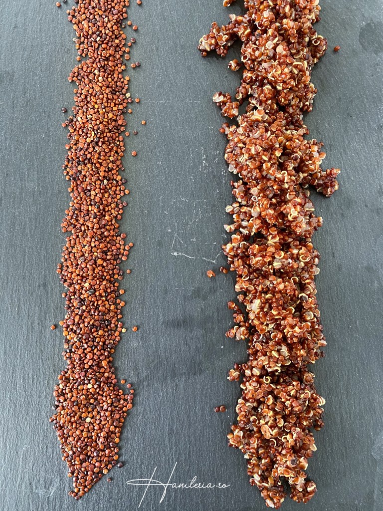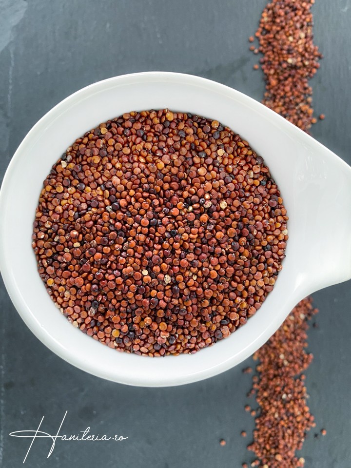 Quinoa este o pseudocereală care a devenit foarte populară în ultimii ani, ea fiind trecută pe lista superalimentelor. Conține o mulțime de substanțe nutritive, o cantitate importantă de proteine și aminoacizi esențiali, ea fiind recomandată și persoanelor cu intoleranță la gluten și vegetarienilor. Nu o să insist pe beneficiile și contraindicațiile acestei mici grăunțe, rămânând să vă documentați voi mai intens și eu doar să vă prezint modul meu de preparare.