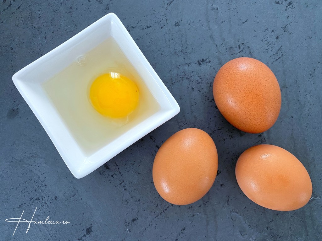 Notă 3: Dacă oul nu e foarte proaspăt, puteți să îl așezați un minut într-o mică strecurătoare sau spumieră pentru a se scurge partea apoasă (nu albușul) și doar după să îl transferați în vasul mic.