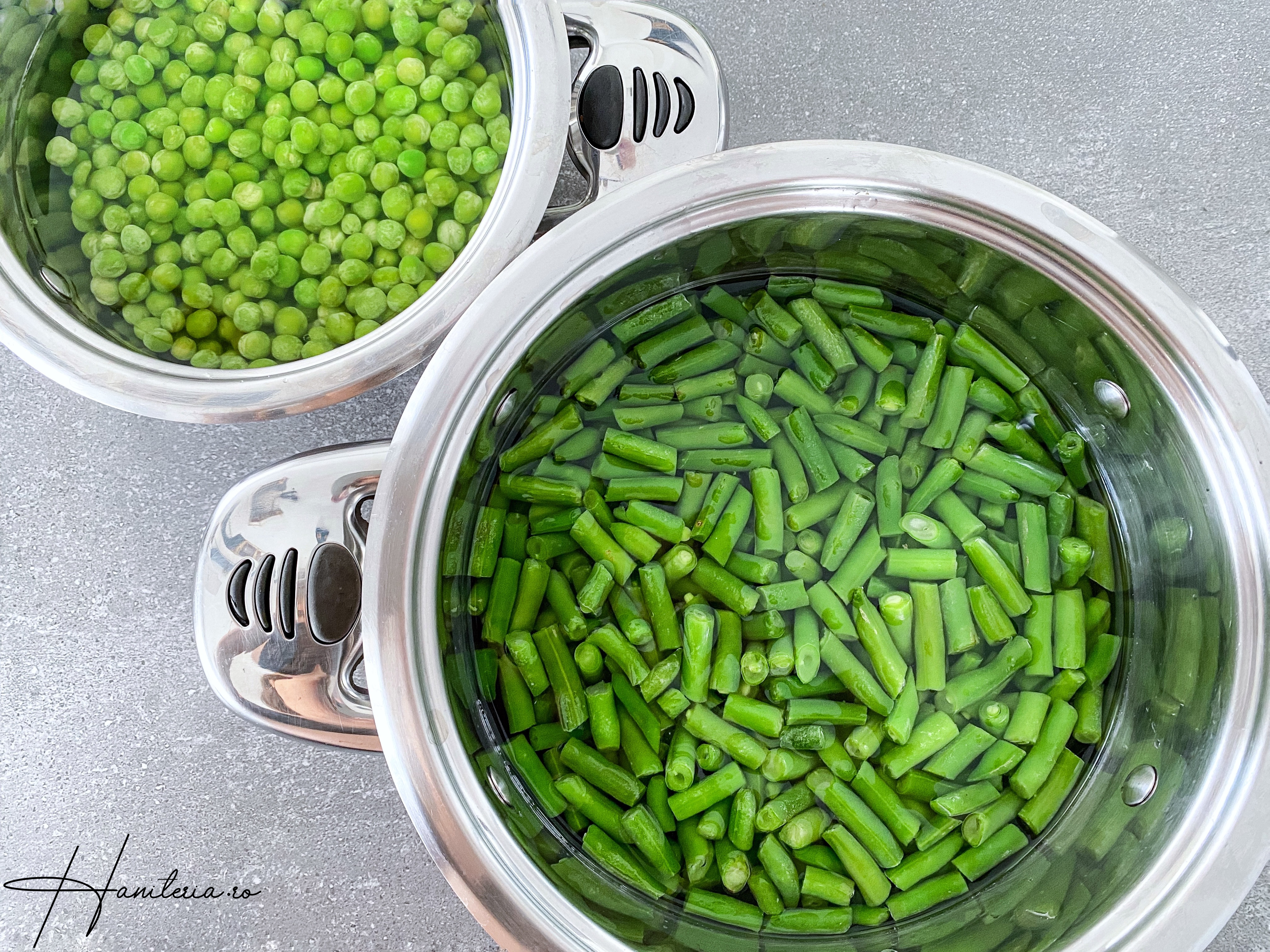 Am fiert mazărea și fasolea verde conform instrucțiunilor de pe ambalaj.