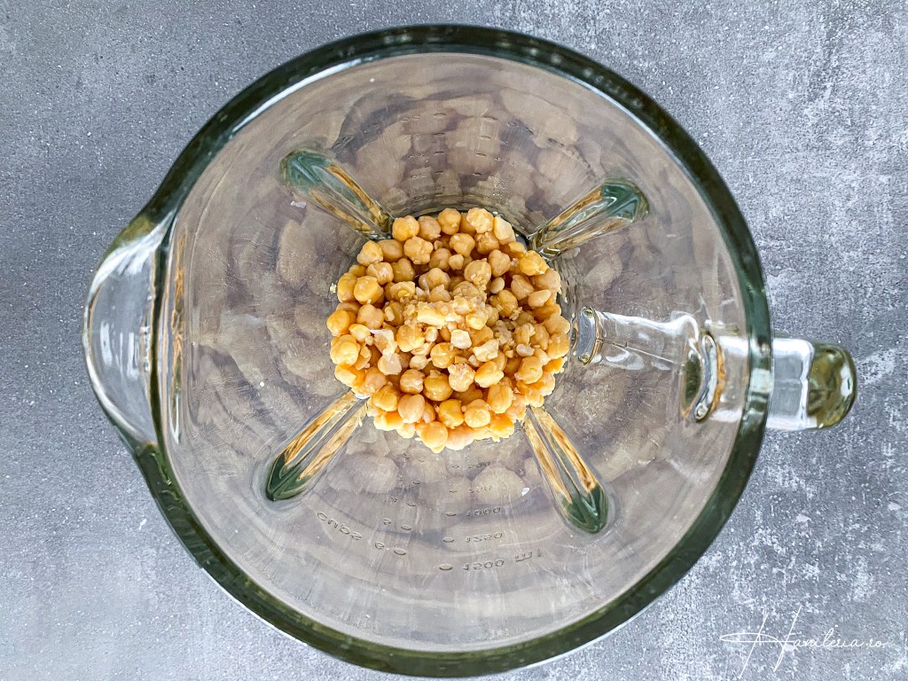 - 1 borcan de năut fiert din comerț (al meu avea 540 g greutate netă / 400 g boabe năut)