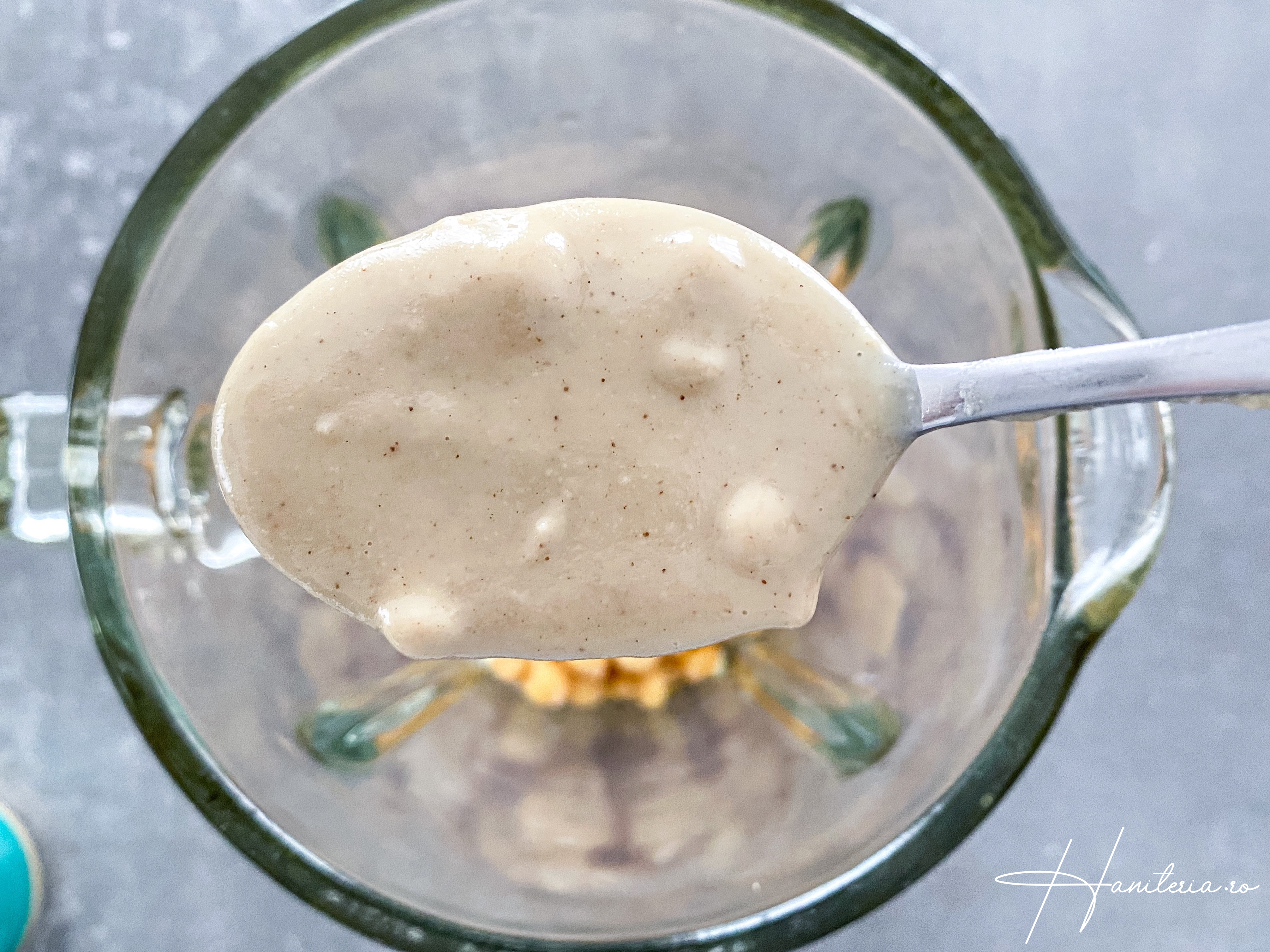 4 – Adăugăm o lingură mare de tahini (pastă de susan) de calitate.