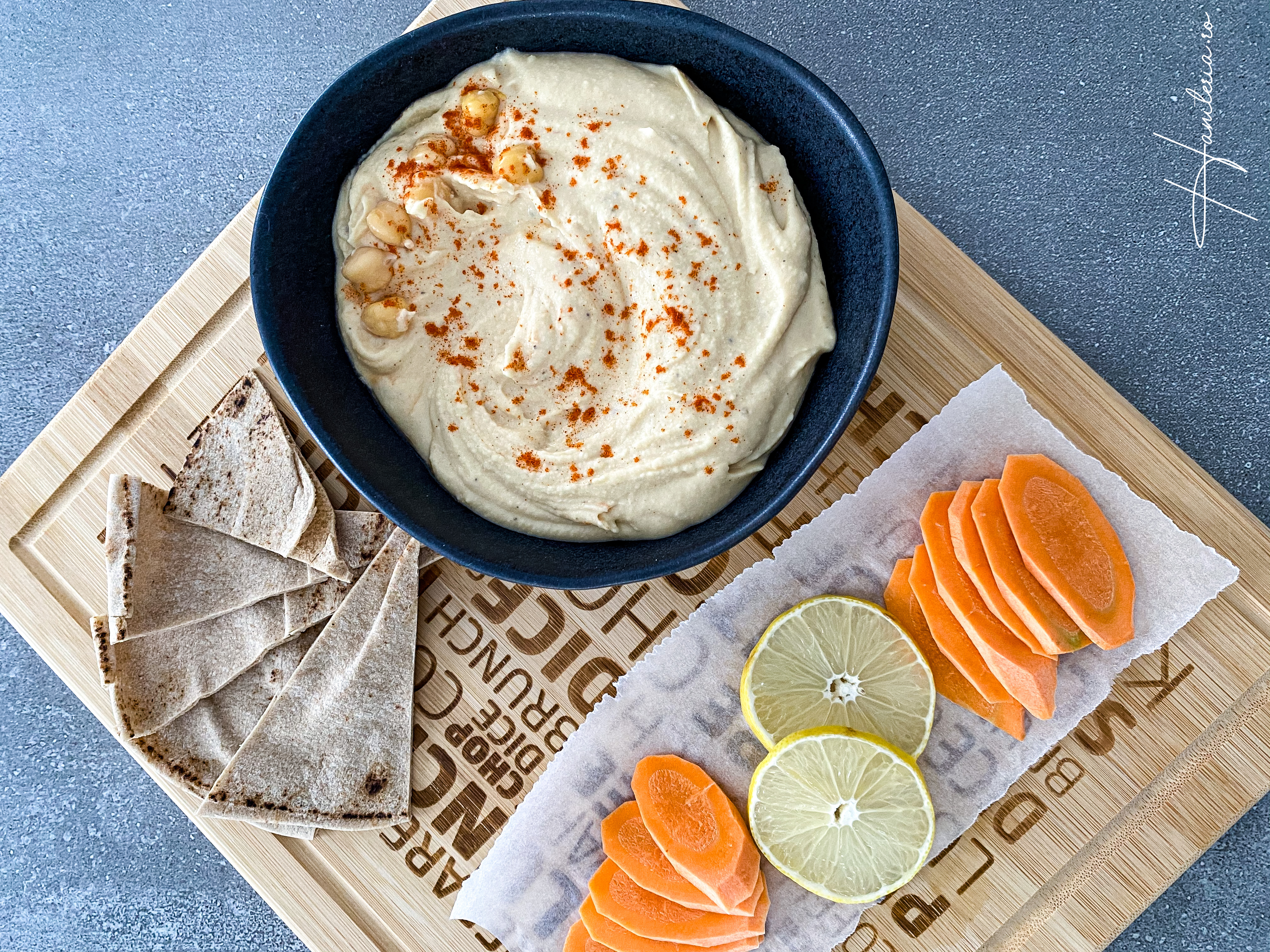 Astăzi vă propun o rețetă foarte rapidă de hummus, la care o să folosim conservă de năut din comerț. Bineînțeles că putem să ne fierbem singuri năutul acasă, dar atunci timpul de preparare crește simțitor și nu am mai putea-o numi rețetă rapidă. Hummusul este o rețetă destul de versatilă, putând fi savurată în foarte multe combinații. Noi îl savurăm uneori la micul dejun, alteori la prânz sau ca snack între mese. Am folosit hummusul chiar și în loc de dressing la o salată. Imginația e singura care vă oprește.