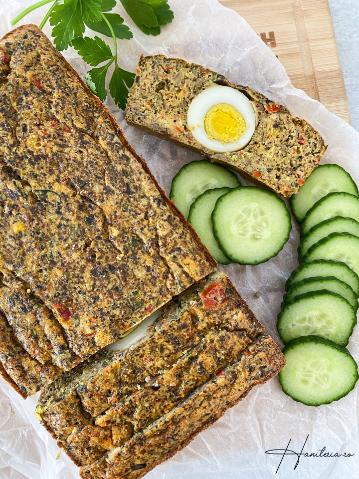Drobul (plăcinta) de ciuperci este o rețetă pe care am repetat-o și modificat-o de foarte multe ori. Deși îmi plăcea gustul, nu eram f mulțumită de textură, era cumva prea apoasă, ciupercile având un conținut foarte mare de apă. A ieșit uscată doar atunci când am făcut-o ca un chec și am folosit și praf de copt. Dar eu îmi doream de data asta altceva, ceva între cele două variante. Am apelat la făina de năut (cantitate pe care am modificat-o de multe ori),un tip de făină care vine și cu un anumit conținut de proteină vegetală și de care am fost foarte mulțumită. Nu e o plăcintă uscată, e mai mult cremoasă, a doua zi aducându-mi aminte și de gustul unui pateu. De fapt mie, a doua zi mi-a plăcut și mai mult. Am rugat mai multe persoane să guste și voturile au fost în favoarea ei, mi-au sugerat să o postez. Prin urmare m-am executat și am postat rețeta în ultima ei formă. Fiind în apropierea sărbătorilor pascale am adăugat și trei ouă fierte tari, pentru a îi da aspectul unui drob. Dar puteți să le săriți, la fel de bine merge și fără ele.