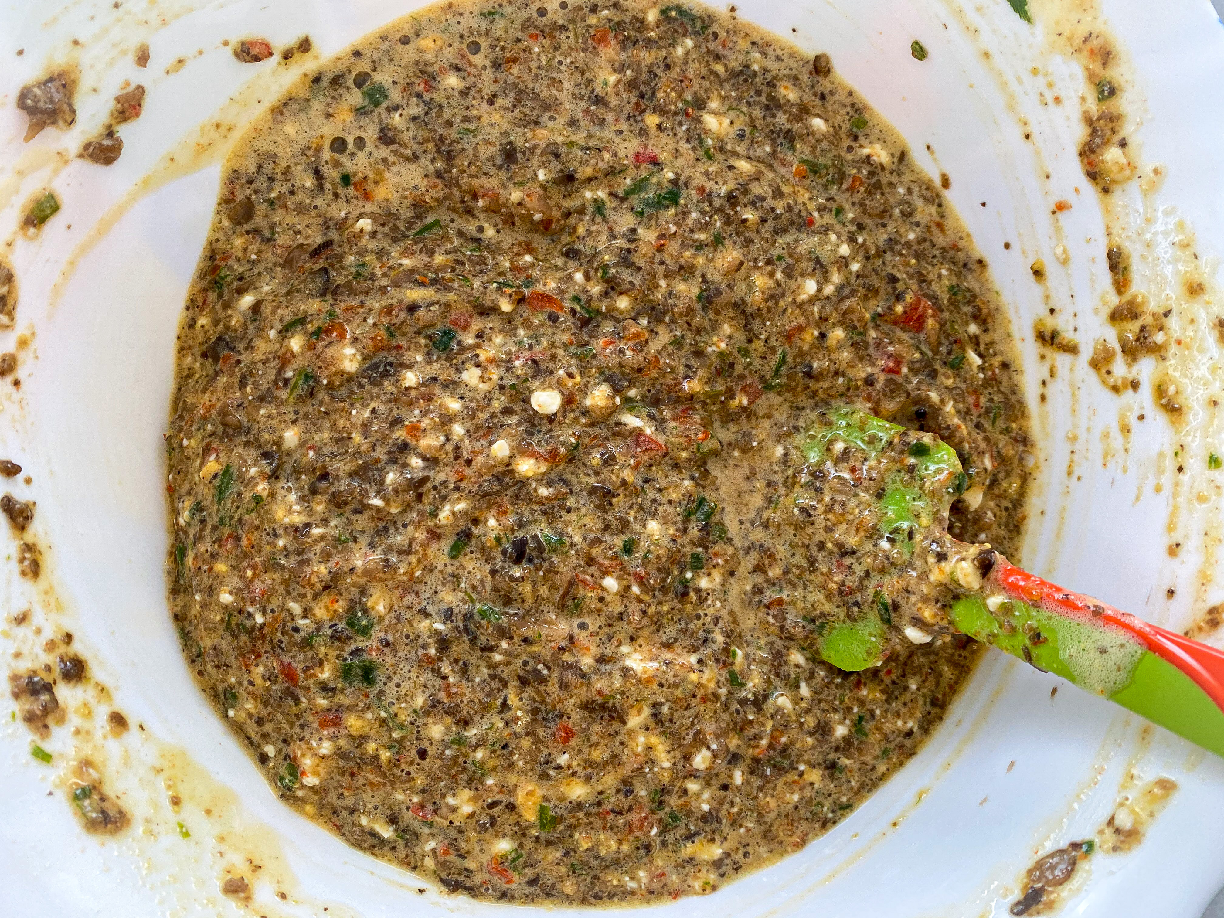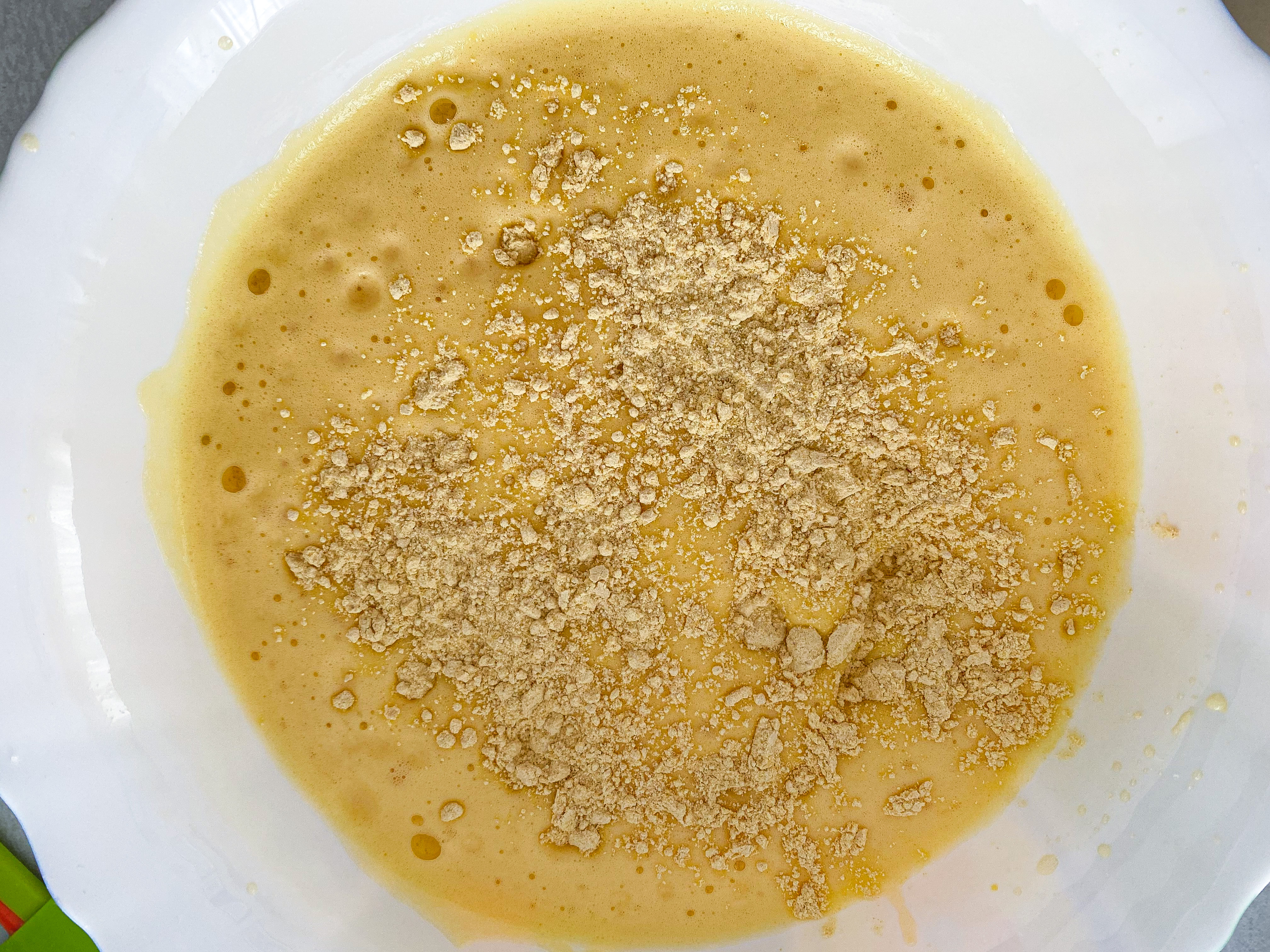 6. Adăugați făina de năut și încoprporați-o cu mișcări ușoare cu ajutorul unei spatule. Nu înlocuiți cu făină albă sau integrală de grâu pentru că nu e la fel.