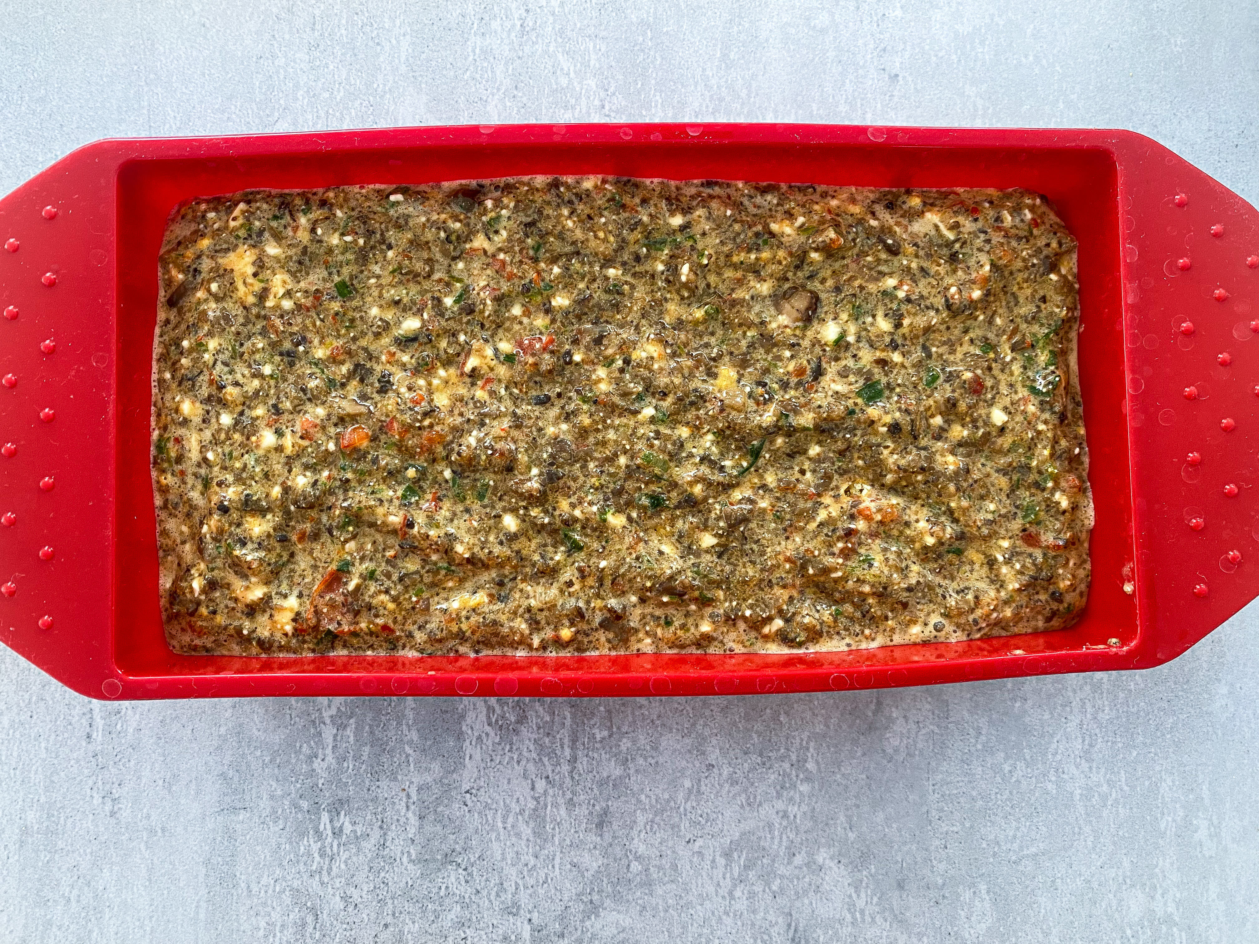 8. Așezați compoziția într-o tavă de silicon. Dacă nu aveți tavă de silicon, atunci folosiți hârtie de copt. Ca să așezați hârtia de copt mai ușor, puteți să o treceți printr-un jet de apă rece, să o scurgeți cât mai bine (o mototoliți bine în pumni) și doar după să o întindeți în tavă.