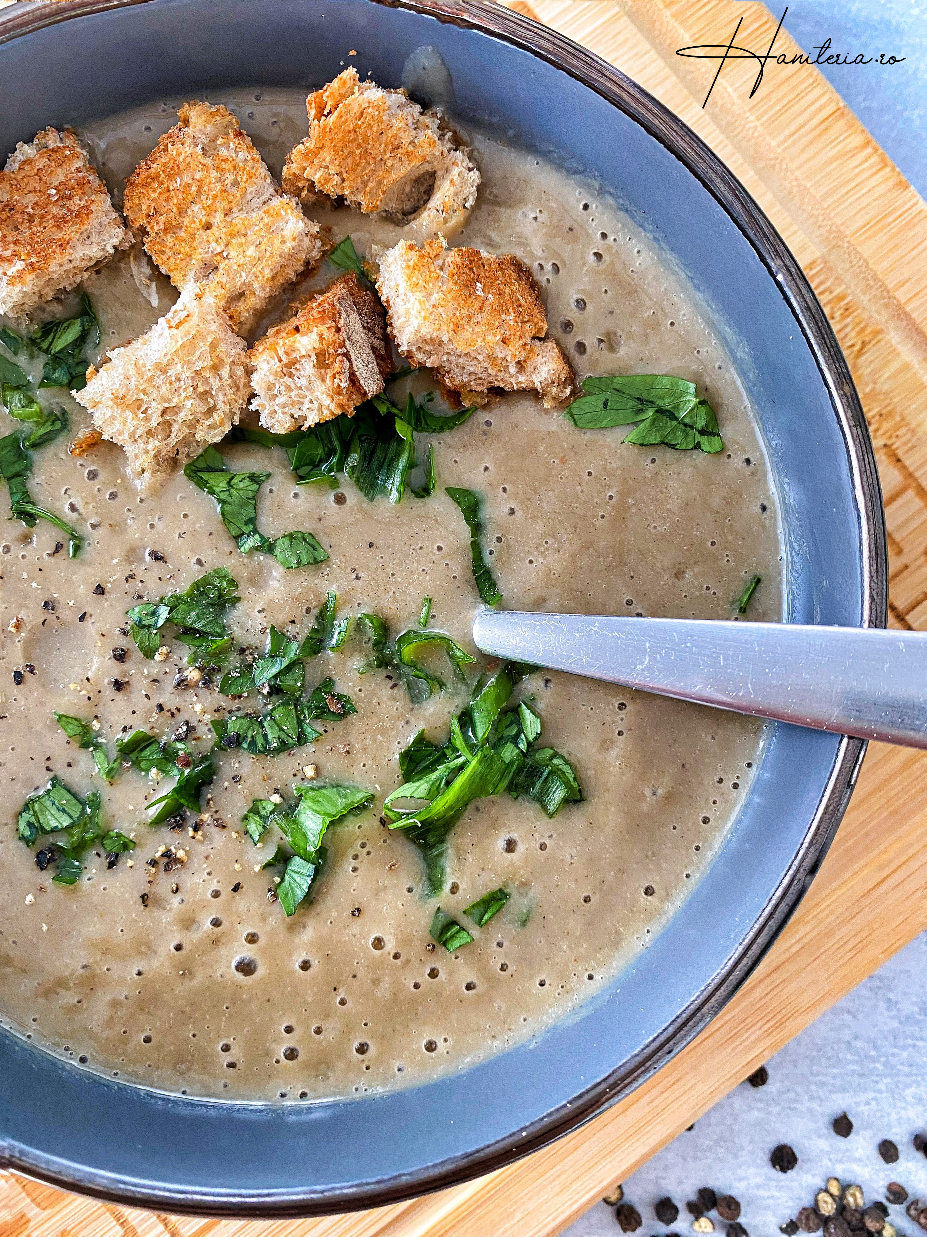 Și uite-așa acum, singura regulălegată de ciuperci e că nu trebuie să le vadă efectiv în mâncare. Ăsta este și motivul pentru care o să găsiți la mine pe blog mâncăruri cu ciuperci, dar cumva ascunse. Așa a fost și cazul drobului cu ciuperci deja postat și așa e și supa cremă de azi. Atâta timp cât ciupercile nu sunt la vedere, toată lumea e mulțumită.