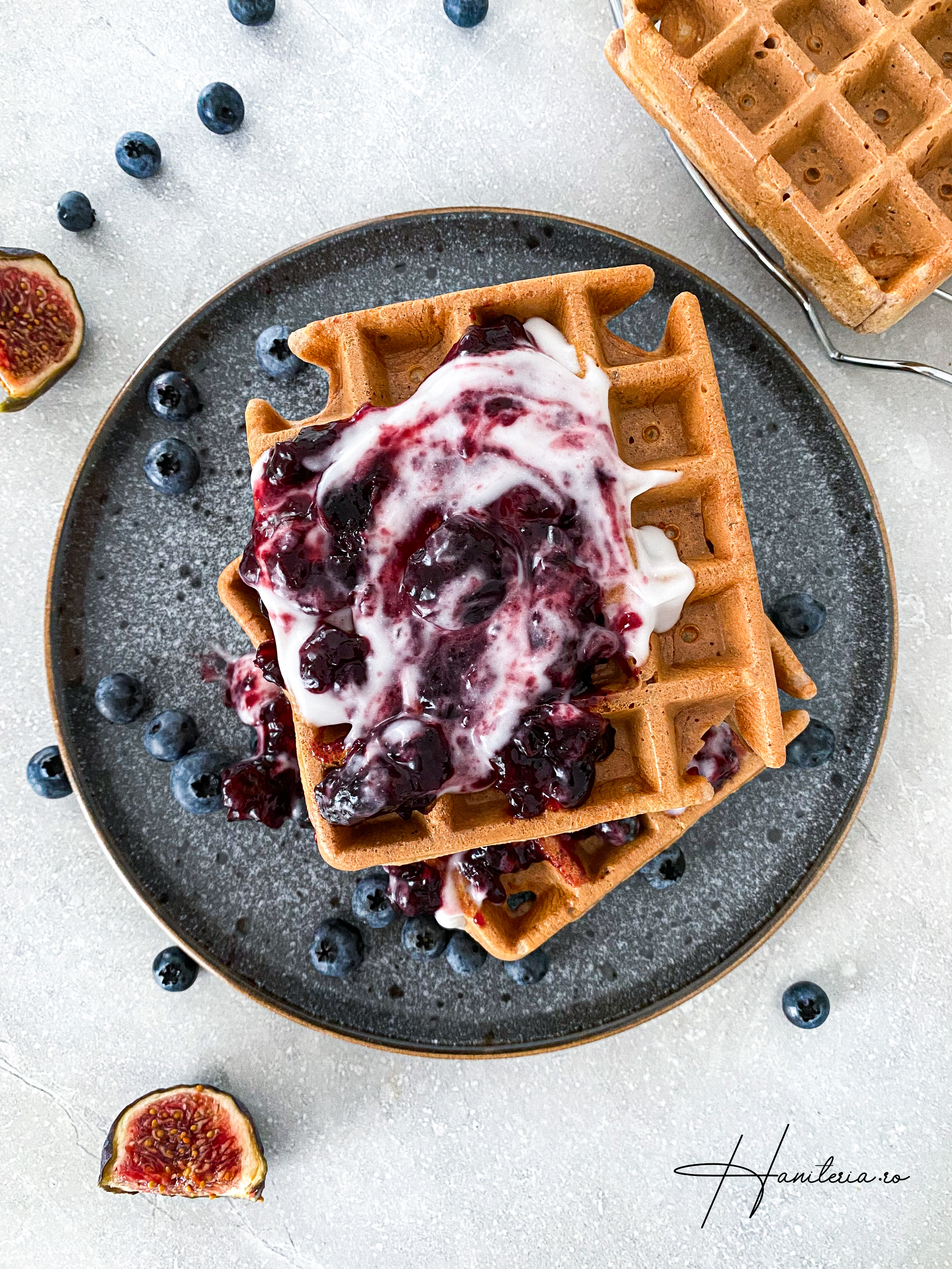 6. Scoateți vafele pe un grătar și serviți-le cu topping-ul vostru preferat: diverse gemuri, iaurt de cocos combinat cu dulceață, cu fructe proaspete, ciocolată fără zahăr,etc.
