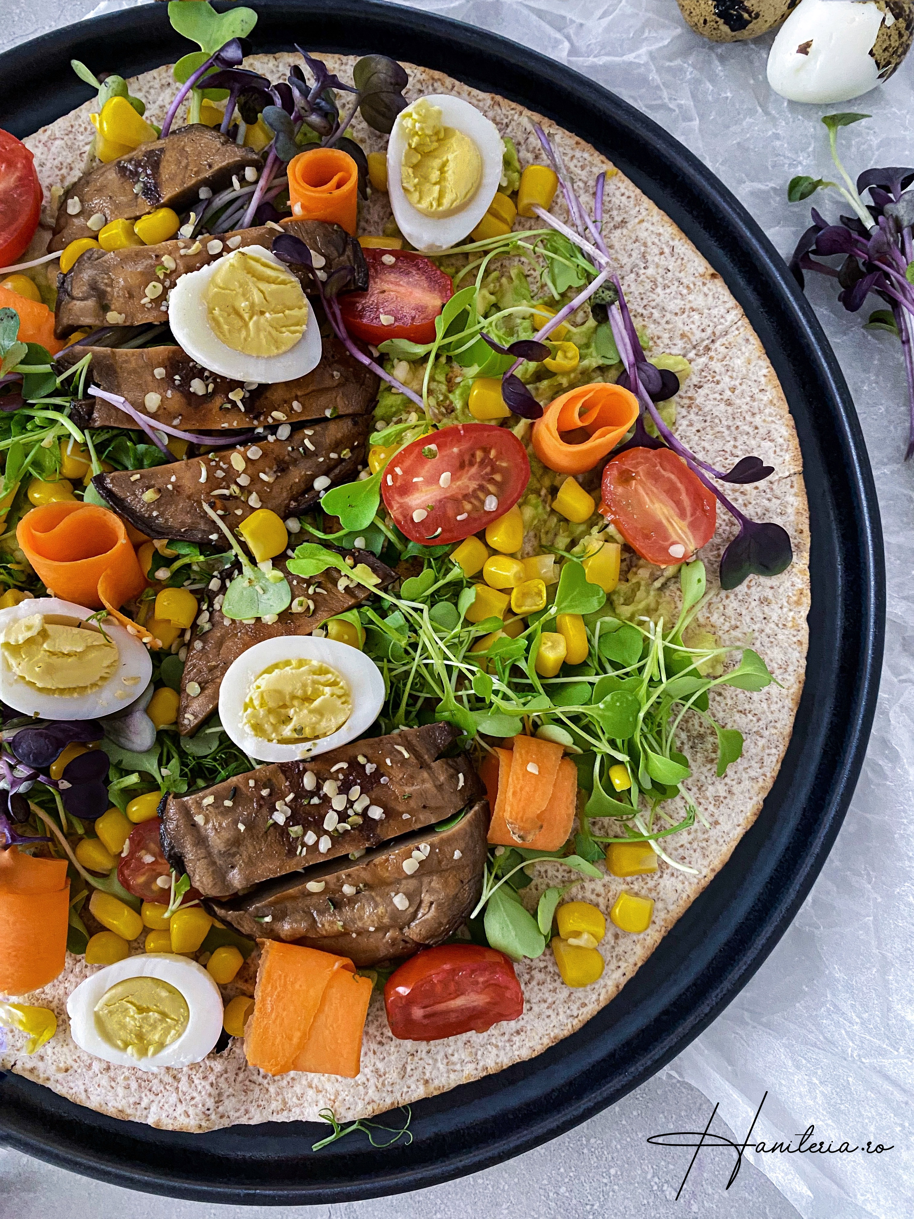 5. Adăugați restul ingredientelor, rulați tortilla și savurați.