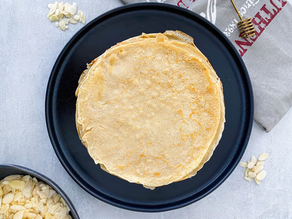 Notă: în locul laptelui de vacă am folosit și lapte de ovăz The Bridge (care nu conține zahăr) și rețeta a funcționat. Nu garantez și pentru alte variante de lapte vegetal. Trebuie doar mai mulă grijă la întoarcerea clătitelor, acestea fiind mai sensibile.