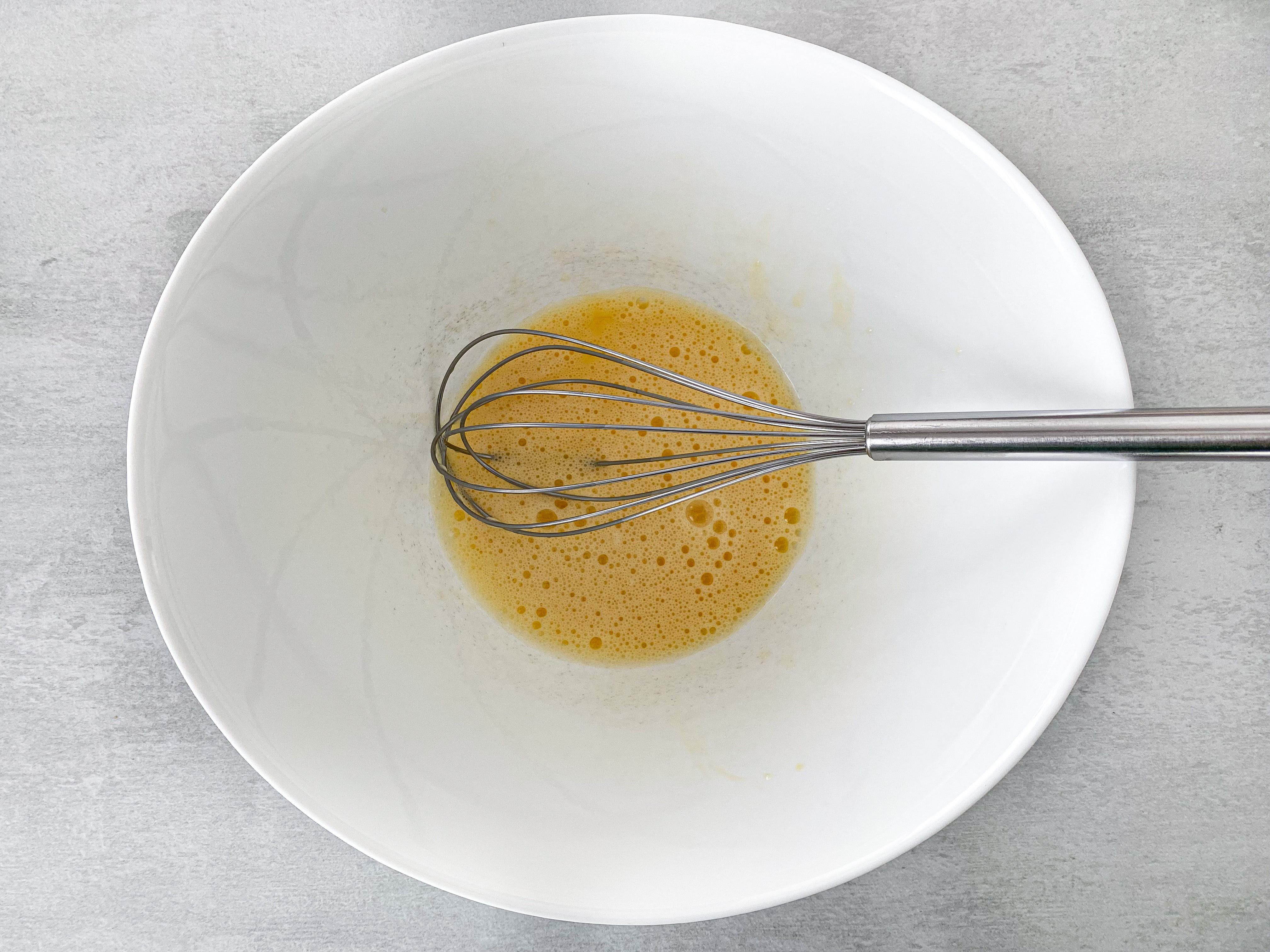 1 Am bătut ușor oul cu sarea si extractul de vanilie (sau extract de portocală, coajă de lamâie, etc) .
