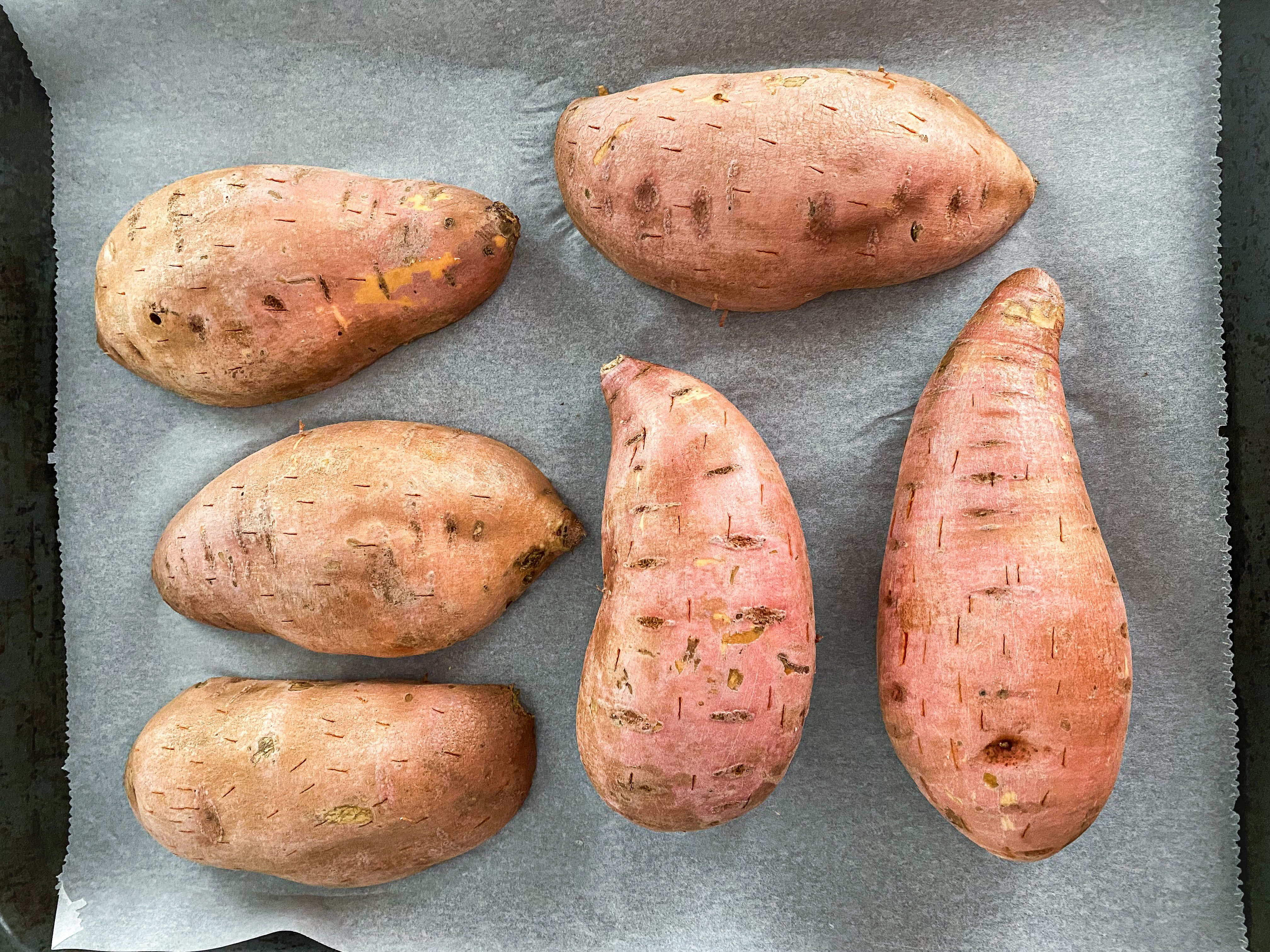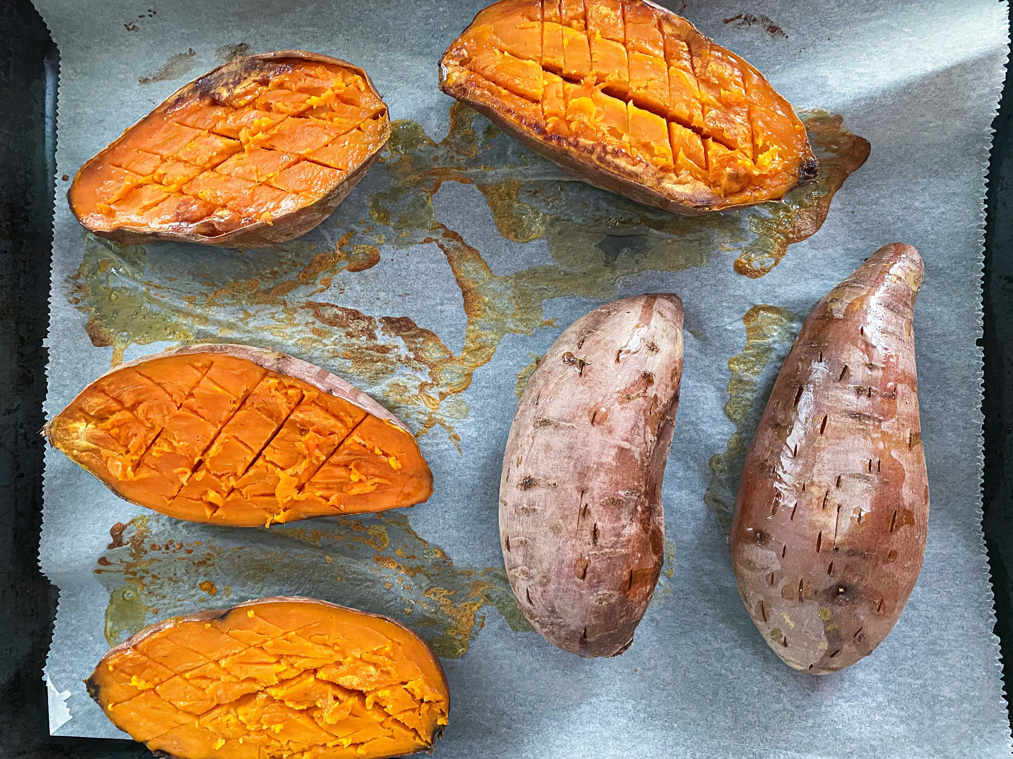 Așa cum vă spuneam la început, eu de multe ori coc mai mulți cartofi dulci deodată. Păstrez cartofii la frigider și la nevoie, doar îi reîncălzesc la cuptor cu diverse umpluturi.