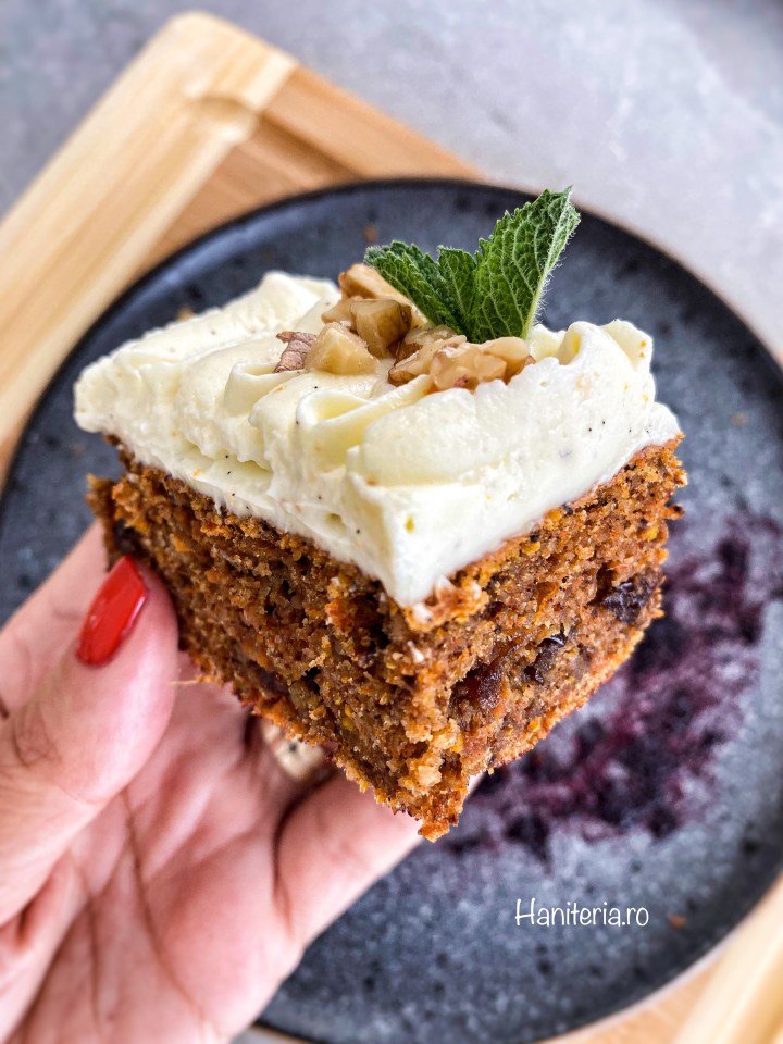 Când am făcut tortul cu morcovi, câțiva dintre voi m-ați întrebat dacă nu am și o variantă mai rapidă, în care să nu coacem foi, să fierbem morcovii în suc de portocale și toate cele. Așa mi-a venit ideea să transform tortul meu de morcovi într-o prăjitură mult mai rapidă, dar la fel de gustoasă. Ingredientele rămân aproximativ aceleași, am adăugat doar în plus niște merișoare (fără zahăr și îndulcite cu suc de mere), nucșoară, iar în locul migdalelor am folosit nucă românească pe care o primisem de la ai mei gata curățată.